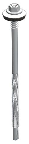 Deze sandwichpaneelschroef 6,3/5,5x200 mm is vervaardigd uit staal met een Ruspert Silver + Wax coating voor uitstekende corrosiebestendigheid. Deze schroef is speciaal ontworpen voor het bevestigen van sandwichpanelen op stalen profielen tot een dikte van 12 mm. De schroef heeft een boorpunt #5 en een boorcapaciteit van 4 - 12 mm. De zeskante kop met SW 5/16'' zorgt voor eenvoudige montage, en de aangeperste ring van 16 mm staal met een EPDM-laag van 2,5 mm biedt een betrouwbare, waterdichte afsluiting.